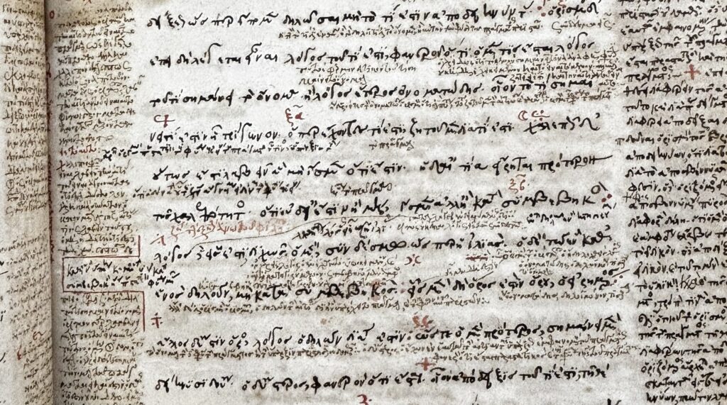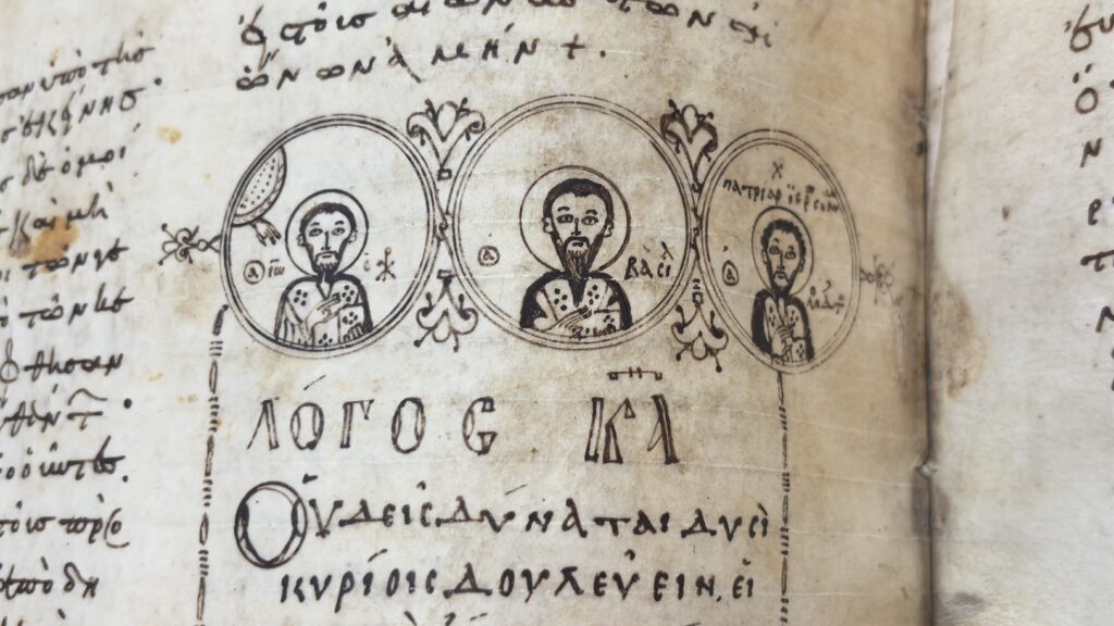 Neste segundo texto da série, trago o resultado de minhas visitas às coleções especiais do acervo a partir de uma seleção dos três materiais mais surpreendentes que tive a oportunidade de consultar: respectivamente, Garrett MS. 14, um manuscrito com as homilias de São João Crisóstomo sobre o Evangelho segundo São Mateus; Garrett MS. 16, uma cópia da Escada da Divina Ascensão, de São João Clímaco; e, por fim, o já mencionado manuscrito raro das obras do Organon de Aristóteles, Princeton MS.173.