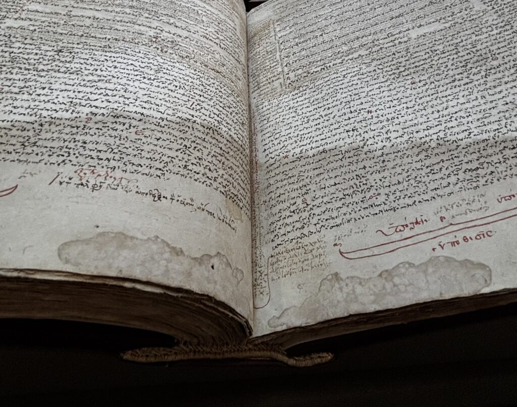 Minha maior surpresa foi observar que uma peça ao lado das escadas de acesso aos subsolos era nada menos do que um mosaico antigo de Antioquia: nem réplica, nem mera decoração, mas um pedaço vivo da história que, entre muitos aspectos, é também a história do próprio acervo de Princeton — o centro de excelência que ao longo do último século se tornou o lar de, entre tantas outras, uma coleção inestimável de manuscritos escritos em grego do período bizantino e pós-bizantino.